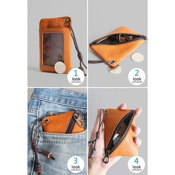 Aitoa Nahkaa Kiinteä Vetoketjullinen Kolikkolompakko Miehille Naisille
