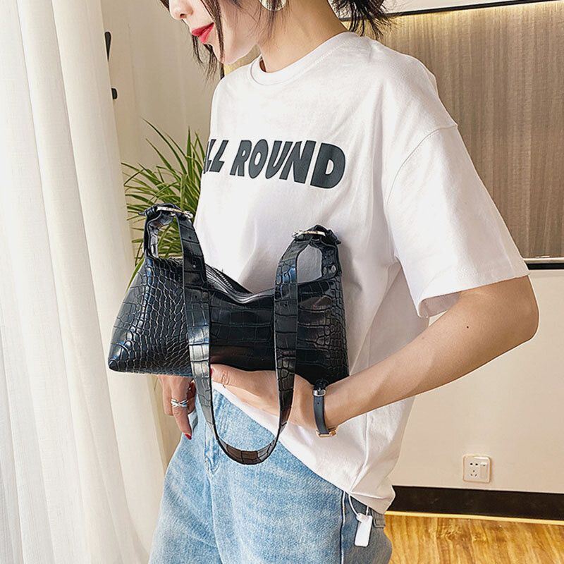 Alligator Croc Pattern Rento Yksivärinen Olkalaukku Käsilaukku Naisille