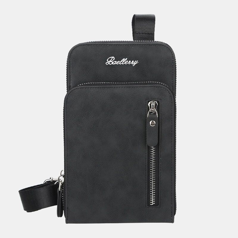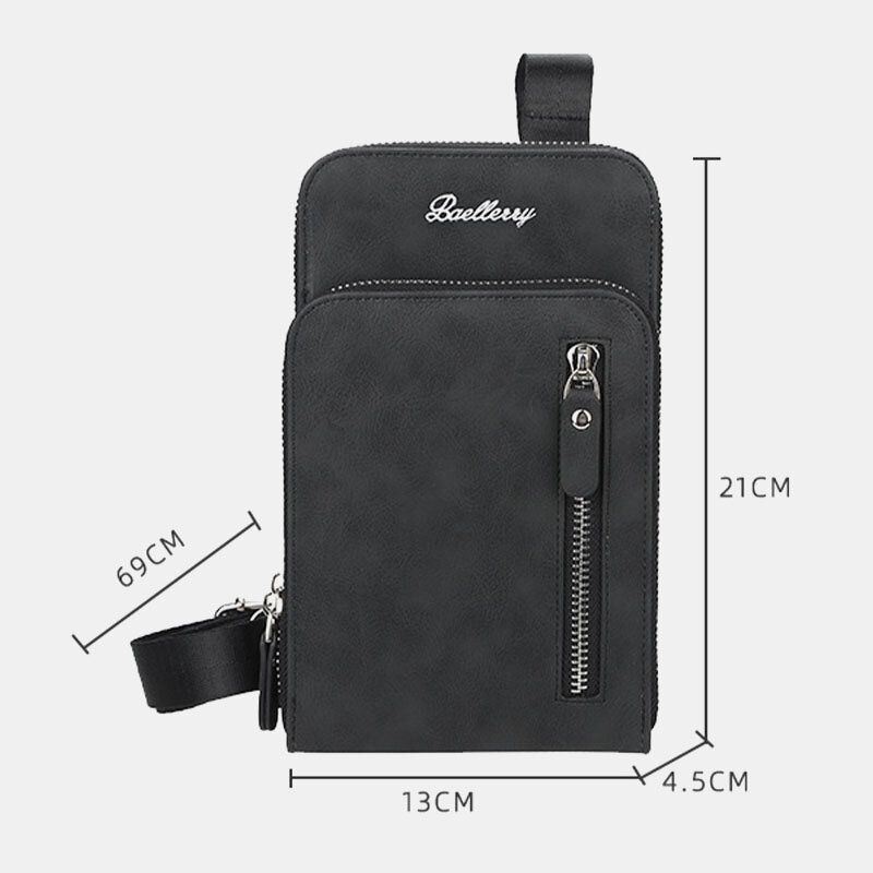 Baellerry Miesten Keinonahkainen Monitoiminen Pystysuuntainen Suuri Kapasiteetti Kaksinkertainen Vetoketju 6.3 Tuuman Puhelinlaukku Crossbody Laukku Lompakko