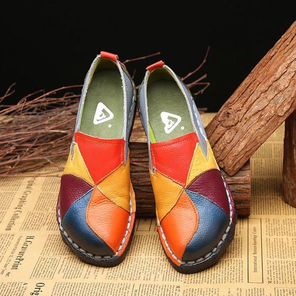 Käsintehdyt Rento Nahkaiset Pehmeät Litteät Loaferit Naisten Kengät Liitoslevyt