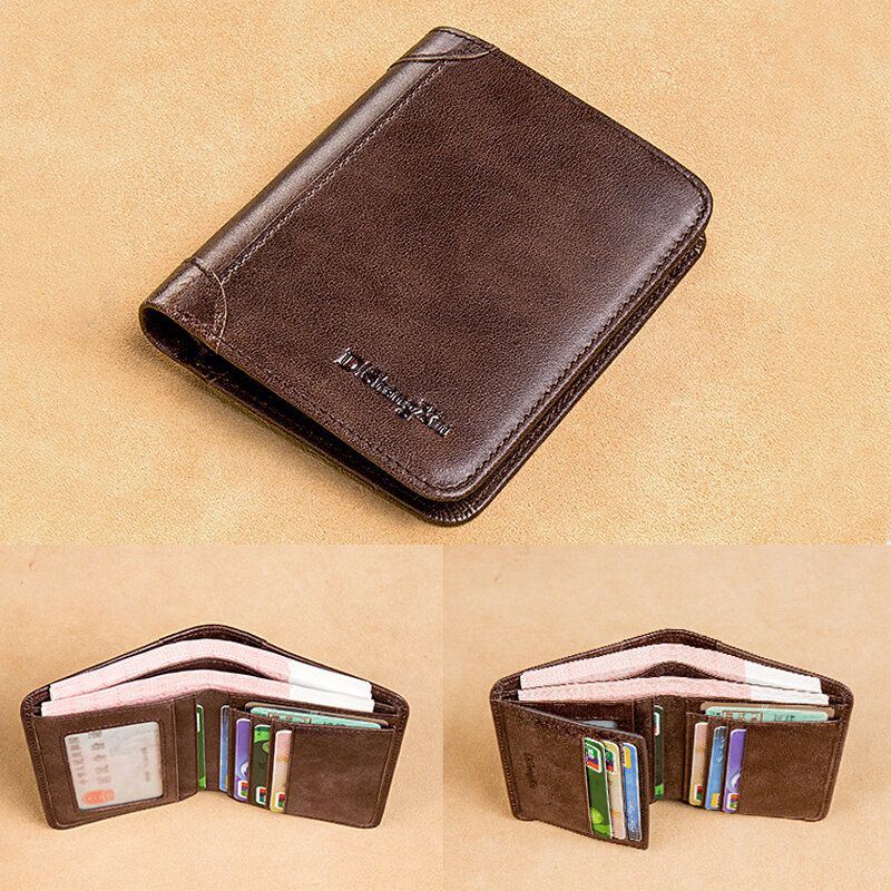 Miehet Estävät Turvallisen Lompakon Muoti Vintage Kukkarot Aitoa Nahkaa Kolminkertainen Lompakko Lyhyt Lompakko