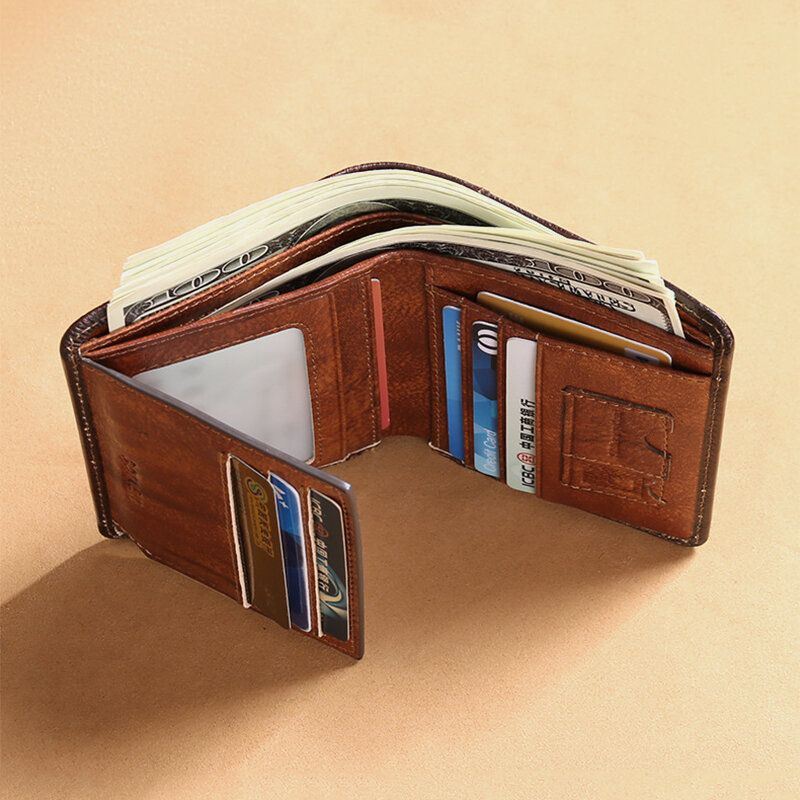 Miesten Aidosta Nahasta Valmistettu Varkaudenesto Monitoiminen Retrokokoinen Suurikokoinen Taitettava Korttikotelo