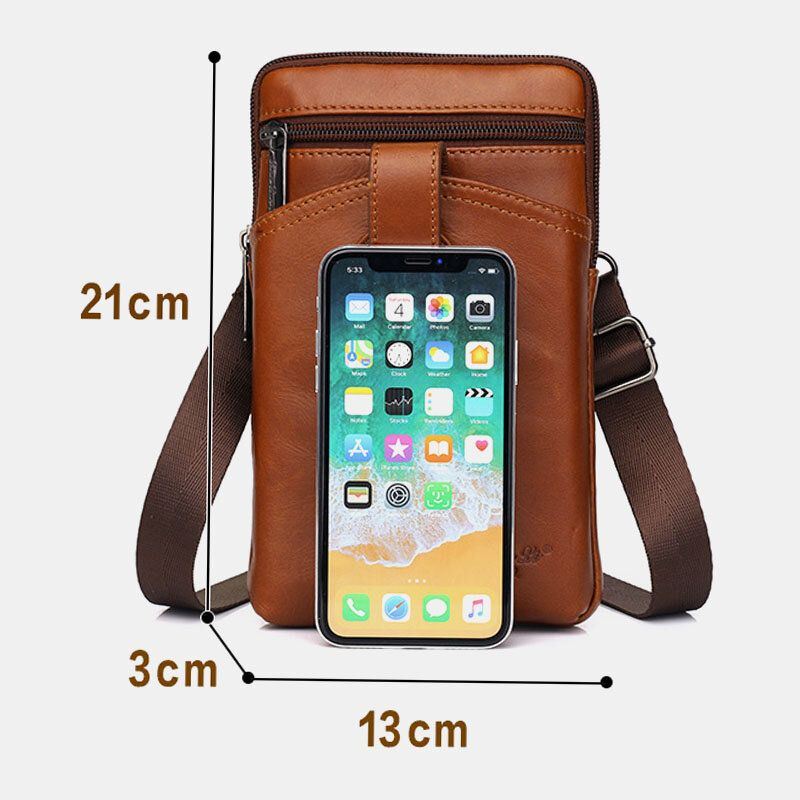 Miesten Aito Nahka Naudannahkainen Vintage Business 6.5 Tuuman Puhelinlaukku Crossbody Bag Vyötärölaukku Sling Bag