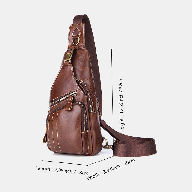 Miesten Aito Nahka Retro Business Casual Yksivärinen Nahkainen Olkalaukku Crossbody Laukku Rintalaukku