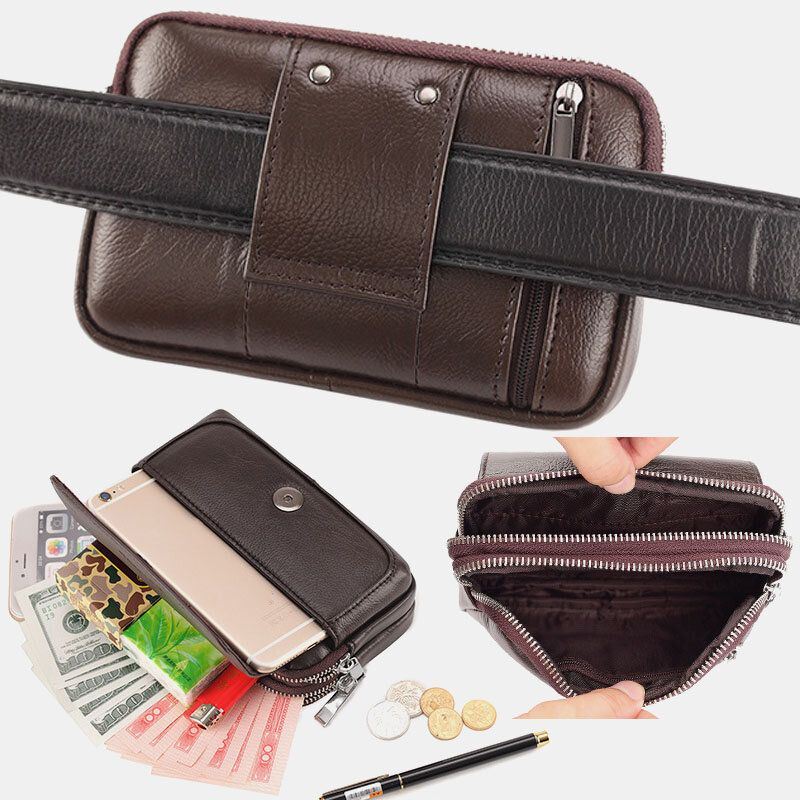Miesten Aito Nahka Retro Multi-carry Mini Puhelinlaukku Korttikotelo Laukku Vyötärölaukku Crossbody Laukku