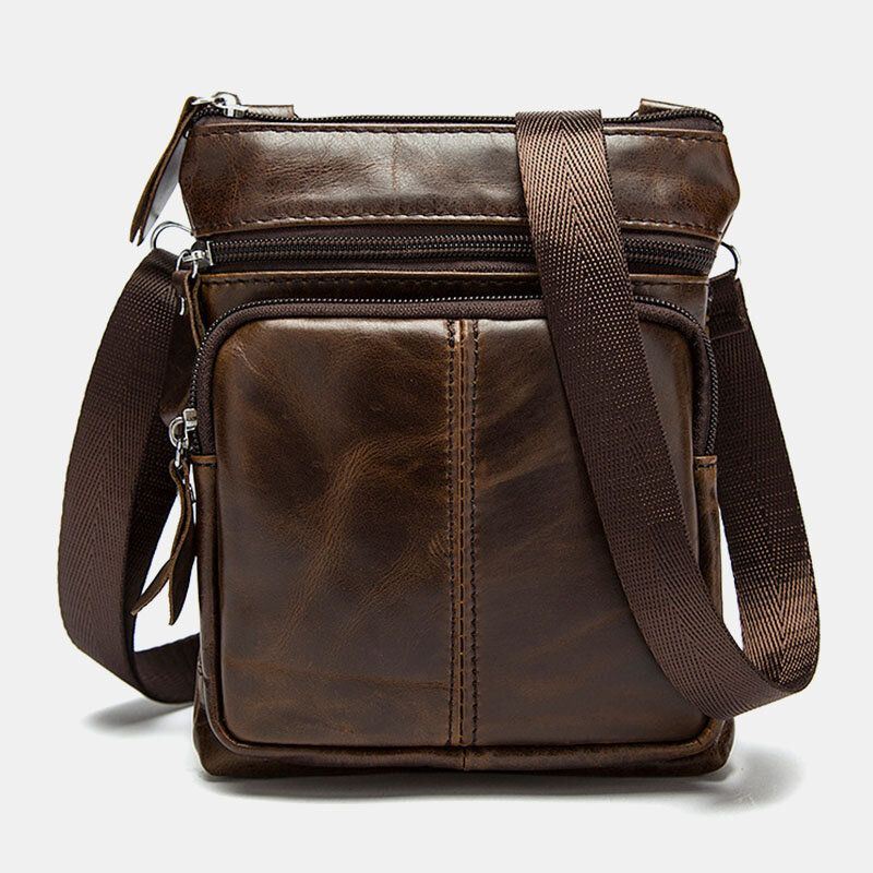 Miesten Aito Nahka Retro Yksivärinen Nahka Vetoketjullinen Laukku Olkalaukku