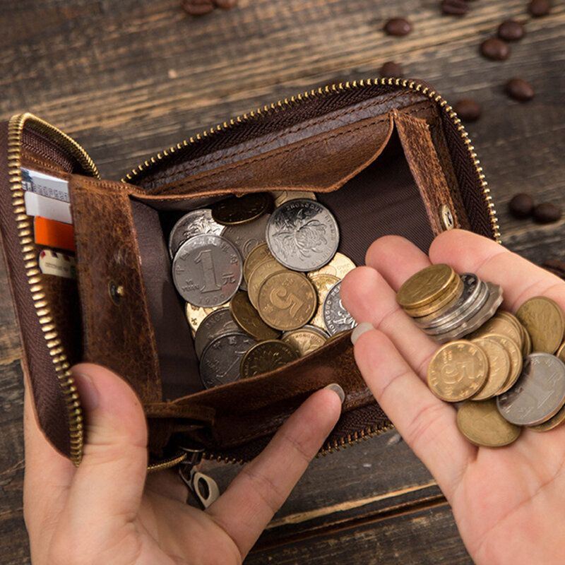 Miesten Aito Nahka Varkaudenesto Niitit Koristeltu Vetoketju Retro Käyntikorttipaikka Nahkainen Korttikotelo Lompakko