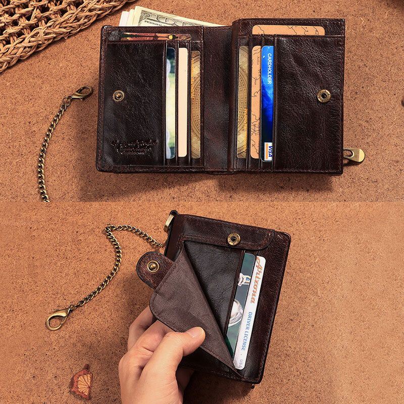 Miesten Aito Nahka Varkaudenesto Vetoketju Monipaikkainen Korttikotelo Ketjulla