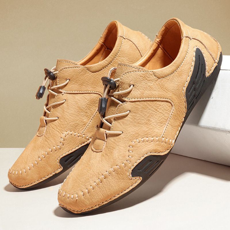 Miesten Aitoa Nahkaa Käsin Ommeltavat Mukavat Pehmeät Pohjat Liukumattomat Tasaiset Vapaa-ajan Kengät
