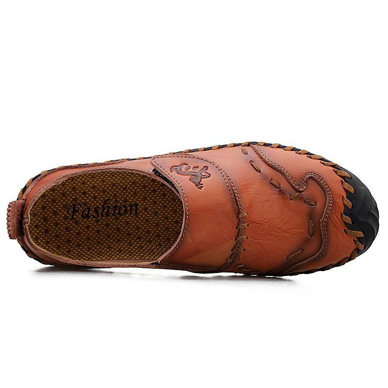 Miesten Aitoa Nahkaa Käsin Ommeltavat Pehmeät Pohjat Koukkusilmukka Rento Asunto