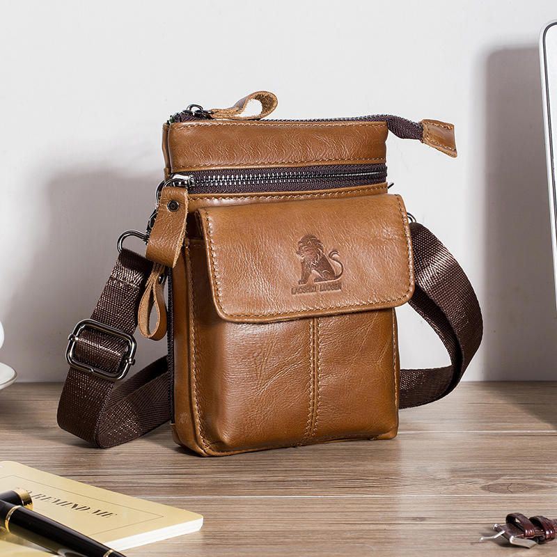 Miesten Aitoa Nahkaa Kantava Crossbody-laukku Lehmännahkainen Laukku