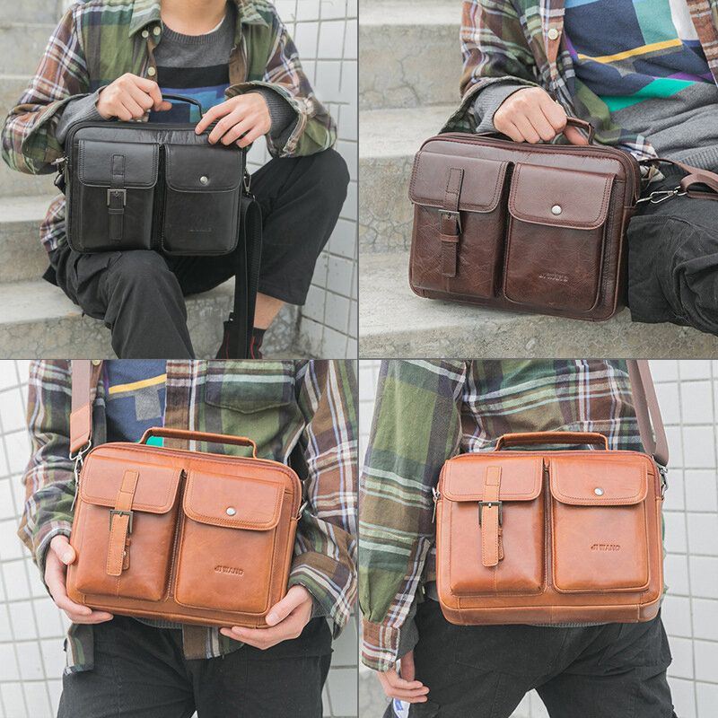 Miesten Aitoa Nahkaa Monitoiminen Retro Suurikapasiteettinen Käsilaukku Olkalaukku Cross Body Bag