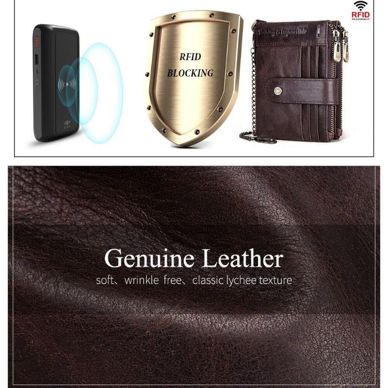 Miesten Aitoa Nahkaa Oleva Ketjulompakko Kaksi Vetoketjua Varkaudenesto Monikorttipaikkainen Korttikotelo