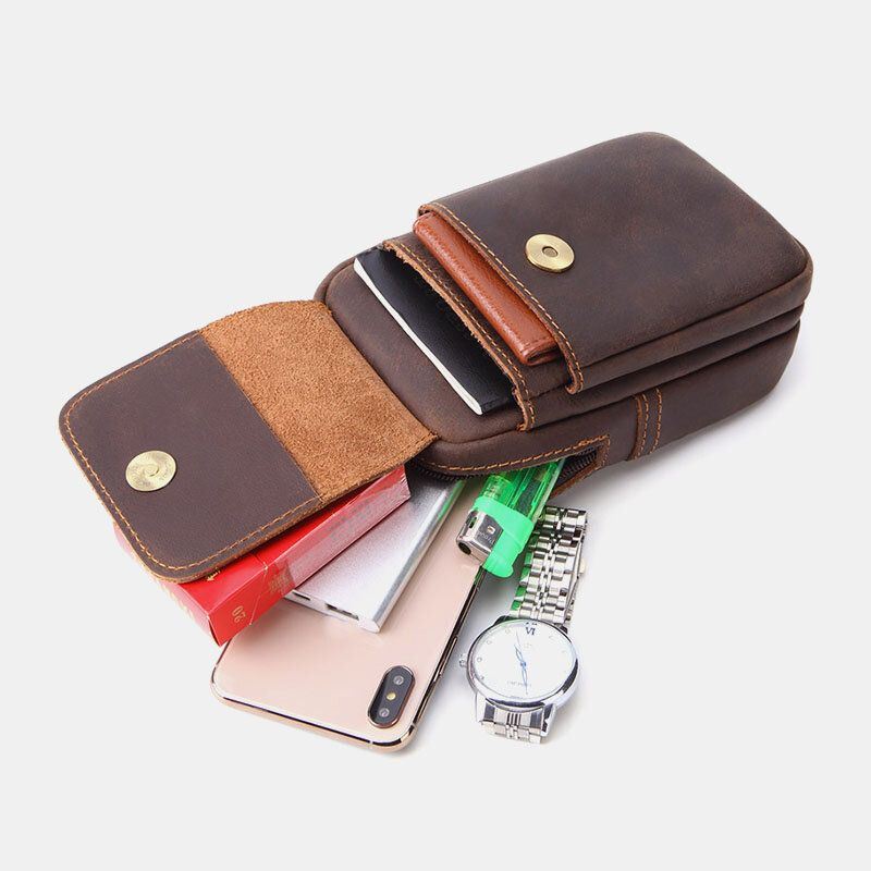 Miesten Aitoa Nahkaa Oleva Monipaikkainen Retro-monitoimilompakko Puhelinlaukku Vyötärölaukku