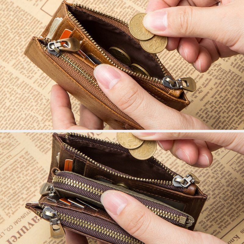 Miesten Aitoa Nahkaa Oleva Vintage-vetoketjullinen Lompakkokorttikotelo Kolikkolaukku