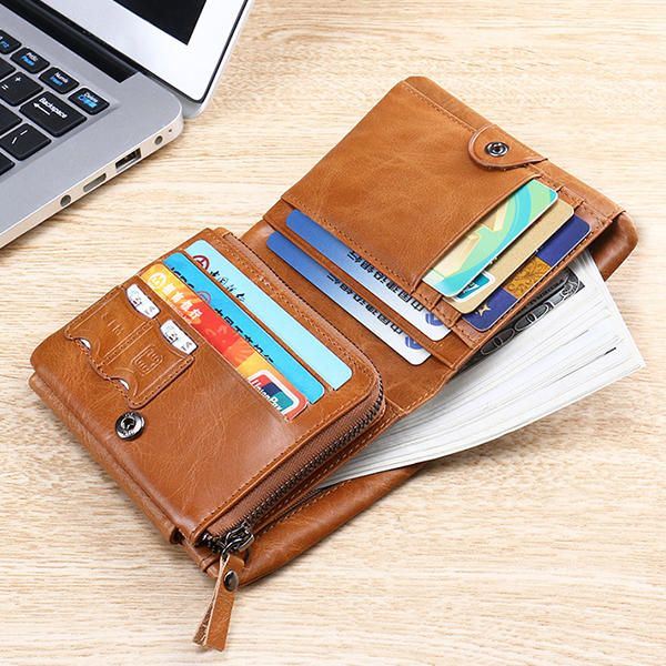 Miesten Aitoa Nahkaa Vetoketjullinen Tasku 12-paikkainen Kolminkertainen Lompakko