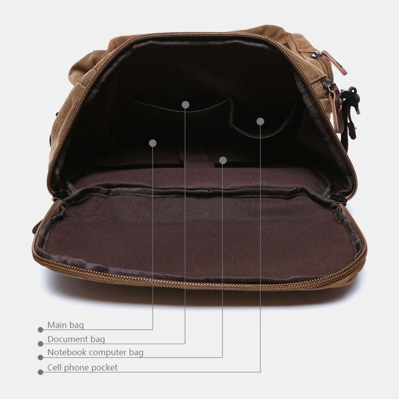 Miesten Canvas Monitaskuinen Suurikapasiteettinen Monitoiminen Kannettava Rento Reppu Matkalaukku