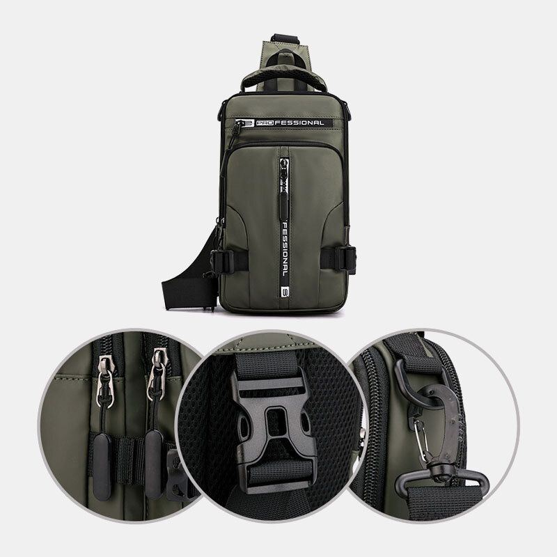 Miesten Casual Monitoiminen Vedenpitävä Nylon Rintalaukku Monitaskuinen Crossbody Laukku Olkalaukku