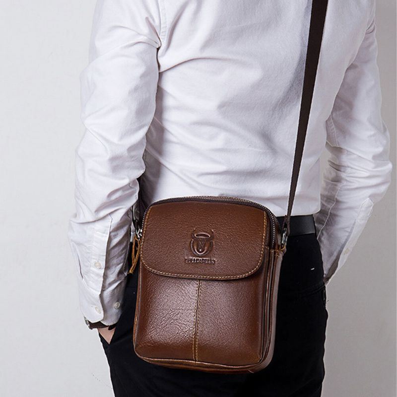 Miesten Ensimmäisen Kerroksen Lehmännahkainen Monitaskuinen Poikkivartalokassi Retro Suuri Tilavuus Takavarkaudenesto Tasku Olkalaukku