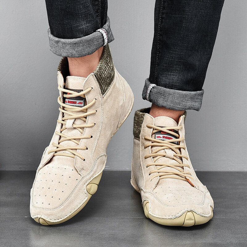 Miesten Hengittävät Pehmeät Nauhalliset Nahkaiset Nilkkurit