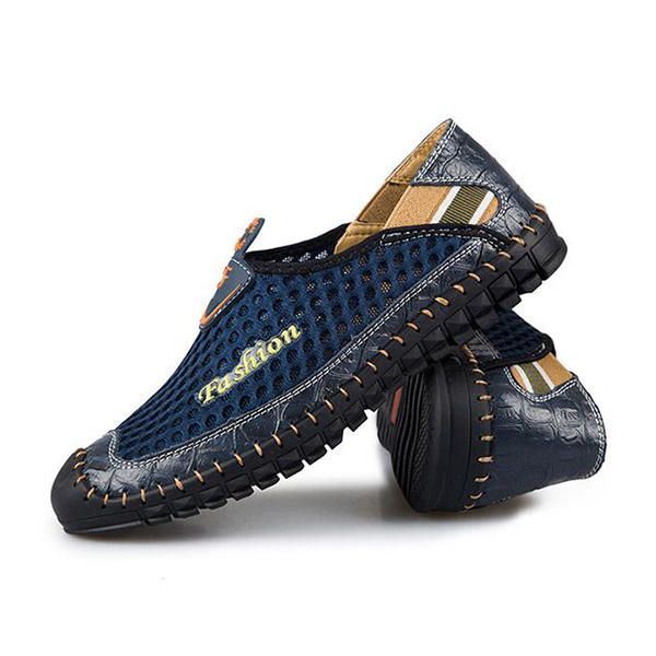 Miesten Hengittävät Rento Verkkokengät Ulkona Aitoa Nahkaa