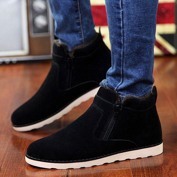 Miesten Isokokoiset Mukavat Sivuvetoketjut Lämmin Turkisvuori Mokkanahkaiset Nilkkurit