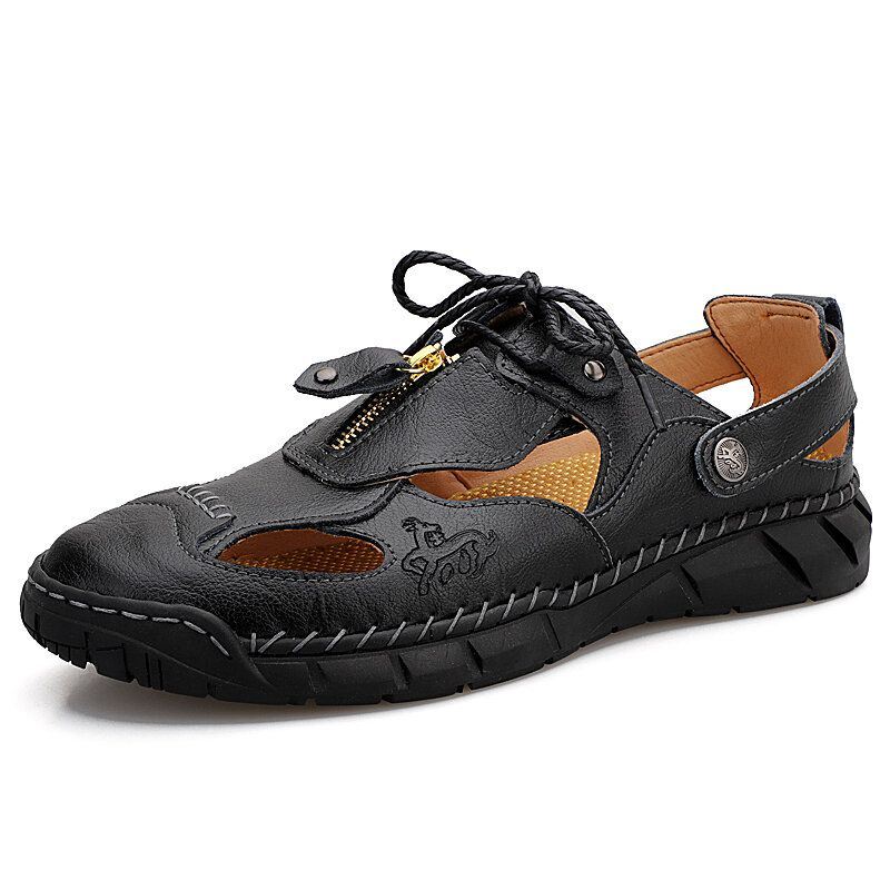 Miesten Käsin Ommeltavat Hengittävät Onttosandaalit Lehmännahkasandaalit