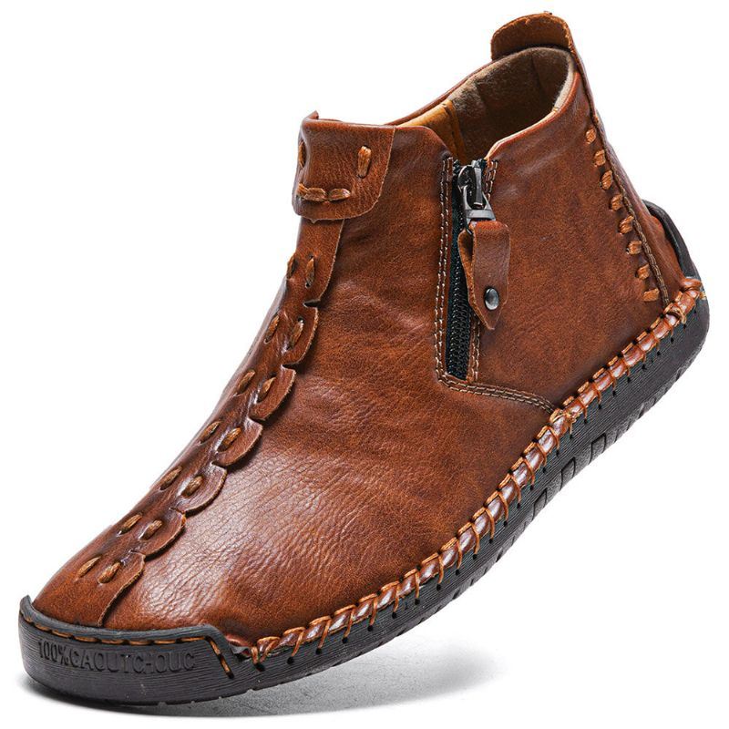 Miesten Käsin Ommeltavat Nahkaiset Sivuvetoketjut Business Casual -nilkkurit