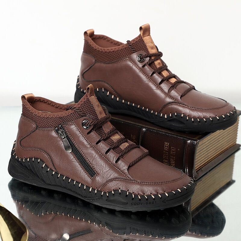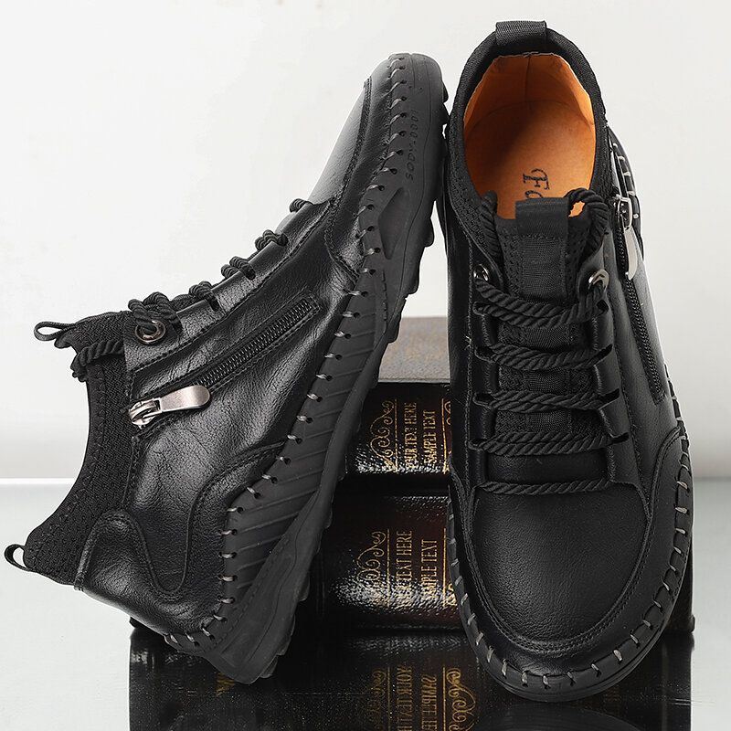 Miesten Käsin Ompeleet Pehmeäpohjaiset Nauhalliset Sivuvetoketjulliset Nilkkurit