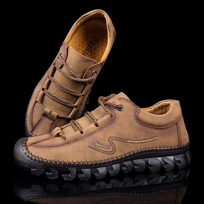 Miesten Käsin Ompelevat Lehmännahkaa Liukumattomat Pehmeät Rento Asunnot