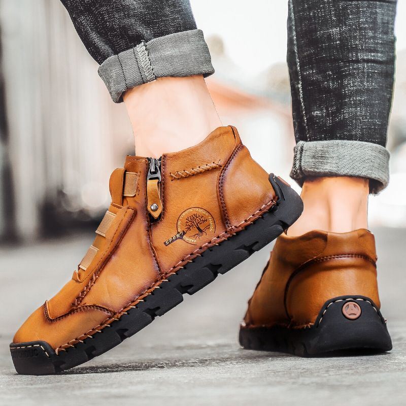 Miesten Käsintehdyt Tyylikkäät Sivuvetoketjulliset Mikrokuituiset Nahkanilkkurit