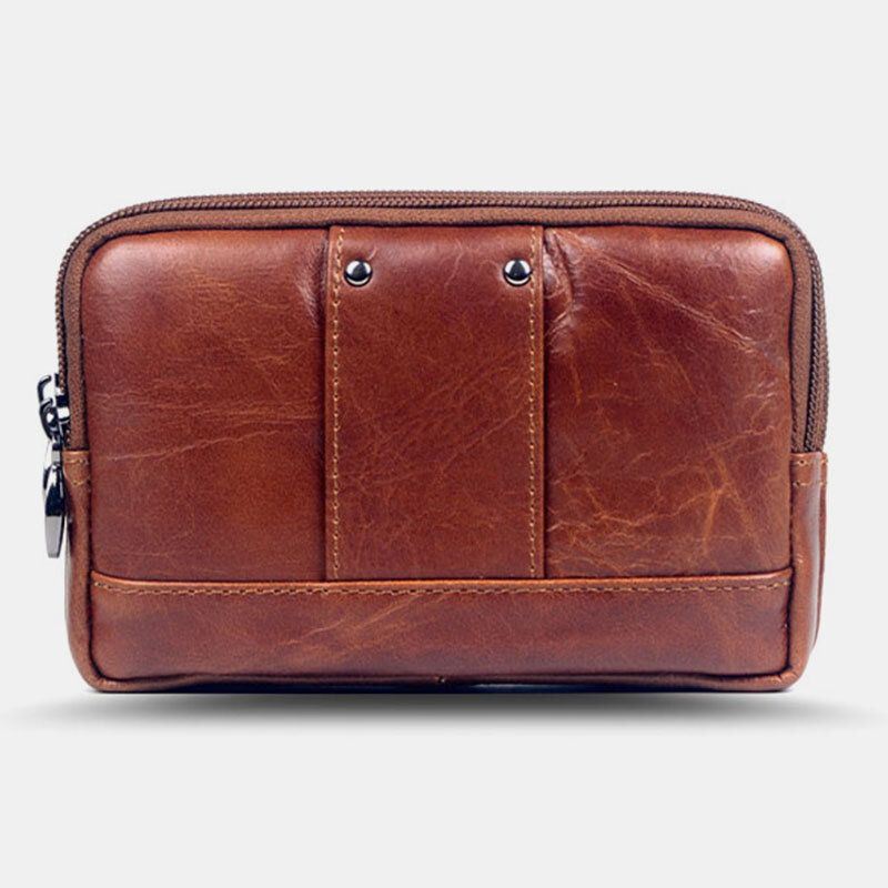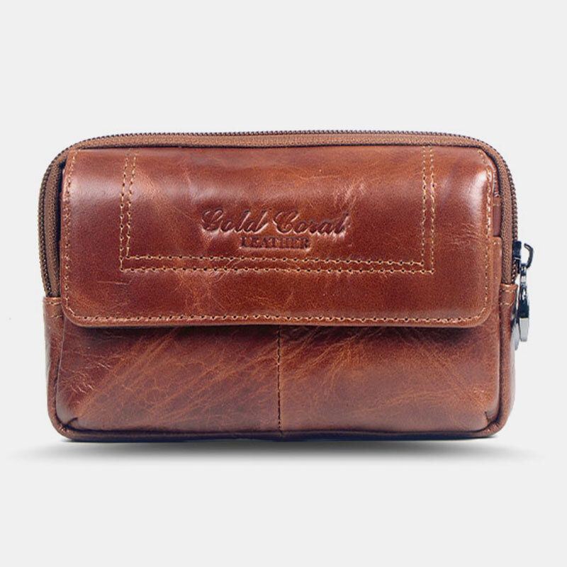 Miesten Kaksikerroksiset Aitoa Nahkaa Vyötäröpakkaukset Kulutusta Kestävät Suuren Kapasiteetin Puhelinlaukku