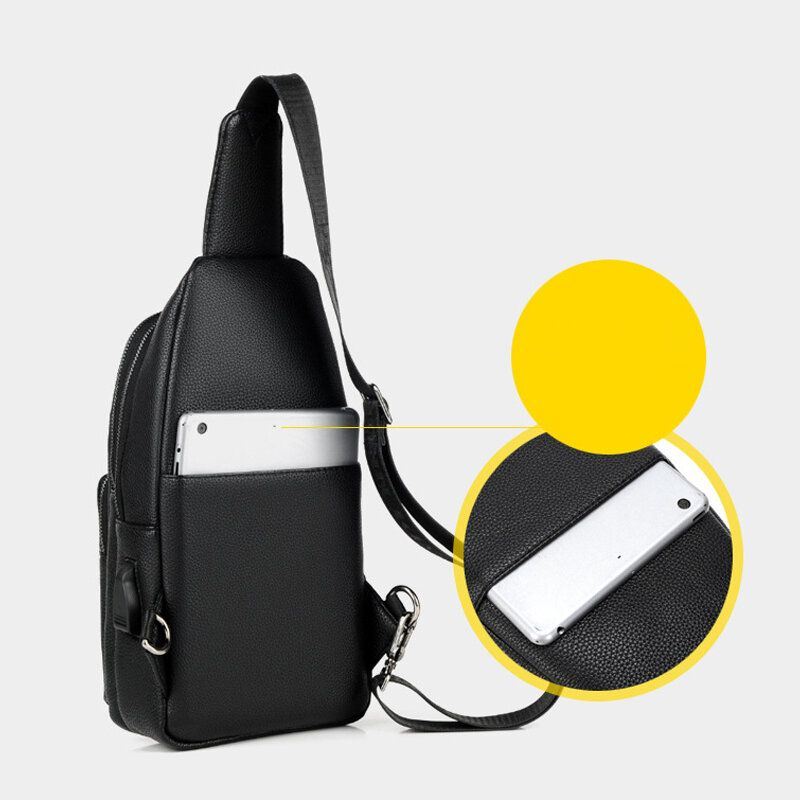 Miesten Keinonahkainen Muoti Rintalaukku Olkalaukku Crossbody Laukku Usb-latausportilla