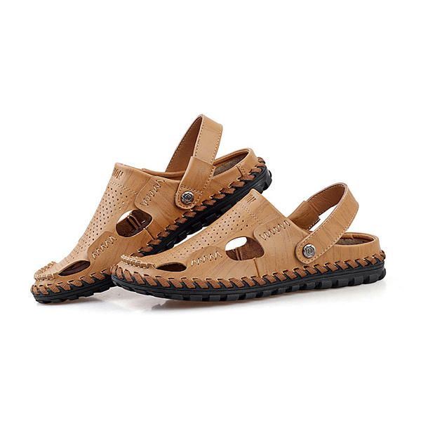 Miesten Kesäiset Nahkasandaalit Rento Pyöreä Varvas Ulkona Tasainen Muoti Pehmeä Rantatossu