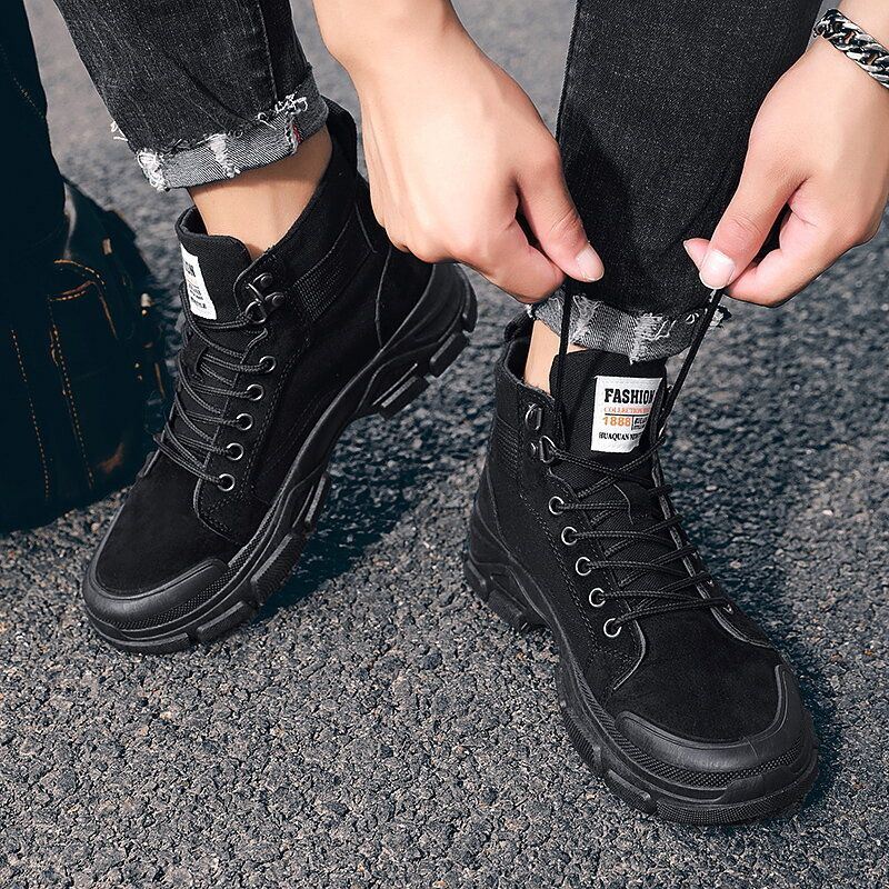 Miesten Korkeavartiset Ulkotyömalliset Liukumattomat Kangassaappaat