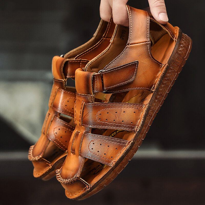 Miesten Lehmännahka Liukumaton Pehmeä Pohja Koukkusilmukka Suljettu Varvassandaalit