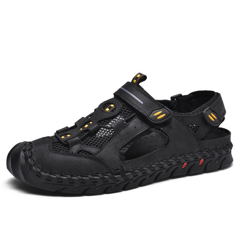 Miesten Lehmännahkainen Nahka Hengittävä Verkko Liukumaton Käsin Ompelevat Pehmeät Vapaa-ajan Sandaalit