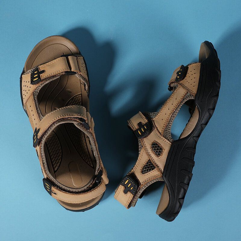 Miesten Lehmännahkaiset Hengittävät Liukumattomat Pehmeäpohjaiset Mukavat Rantasandaalit Ulkokäyttöön