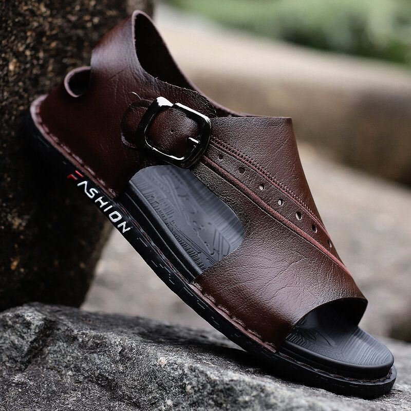 Miesten Lehmännahkaiset Hengittävät Pehmeäpohjaiset Liukumattomat Ja Mukavat Rantasandaalit Ulkokäyttöön
