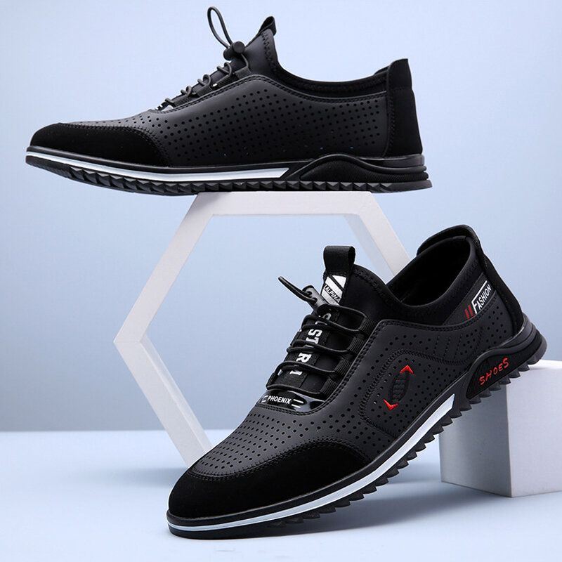 Miesten Lehmännahkaiset Hengittävät Verkkoliitokset Pehmeä Pohja Liukumaton Mukavat Vapaa-ajan Kengät