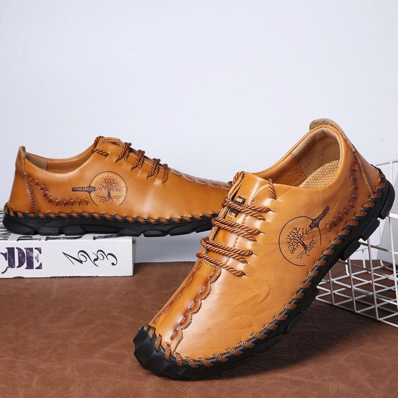 Miesten Lehmännahkaiset Käsiompeleet Törmäyksenestovarvas Vapaa-ajan Kengät