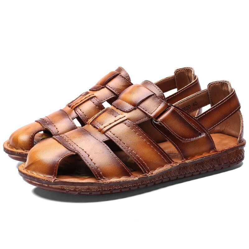 Miesten Lehmännahkasandaalit Käsin Ompelevat Liukastumista Estävät Ulkoilusandaalit