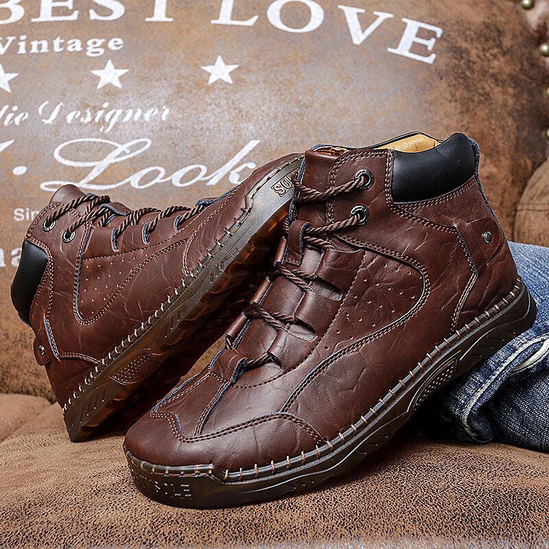 Miesten Mikrokuituliinahka Hengittävä Käsin Ompelemalla Pehmeä Pohja Retro-housut Kiinteät Vapaa-ajan Kengät