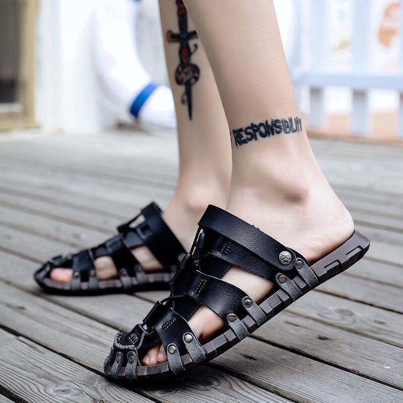 Miesten Mikrokuituliinahka Hengittävä Ontto Pehmeä Pohjallinen Rento Sandaalit