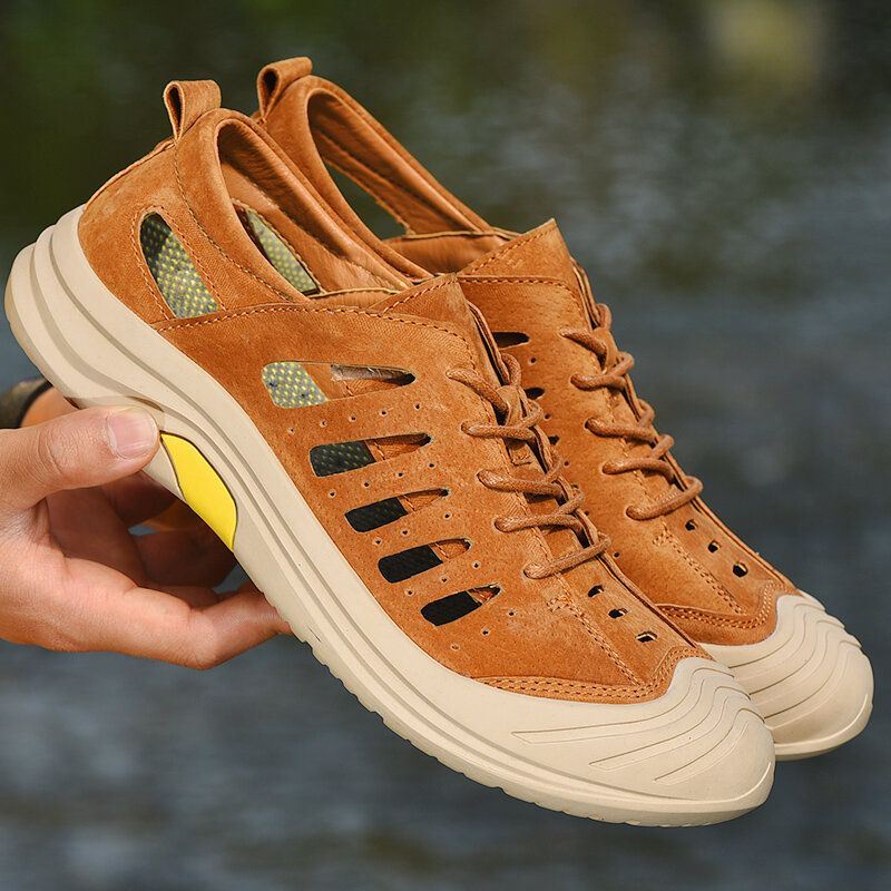 Miesten Mokkanahkaiset Ontot Liukastumista Estävät Törmäyksenestoiset Vapaa-ajan Sandaalit