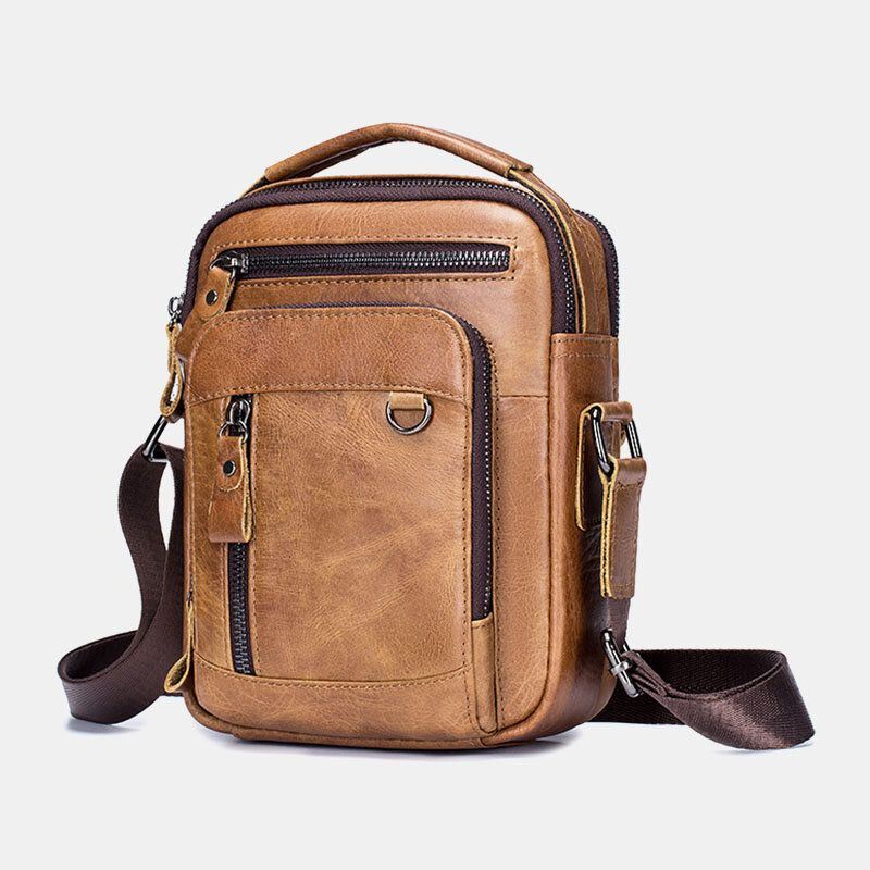 Miesten Monitaskuinen Aito Nahkainen Crossbody Laukut Takaosa Varkaudenesto Taskumuotoilu Kulutusta Kestävä Suurikokoinen Messenger Bag Käsilaukku