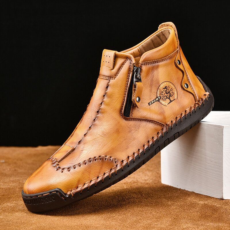 Miesten Nahka Hengittävä Käsinompelu Pehmeä Pohja Mukava Lyhyt Vetoketju Rento Nilkkurit