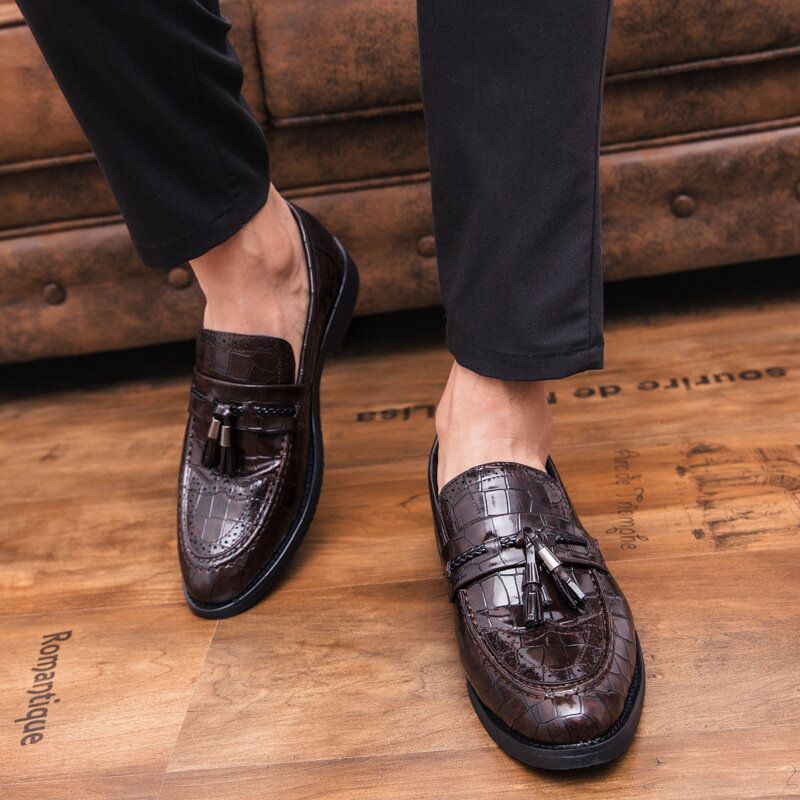 Miesten Nahka Hengittävä Teräväkärki Pehmeä Pohja Vintage Tupsu Vapaa-ajan Yrityskengät