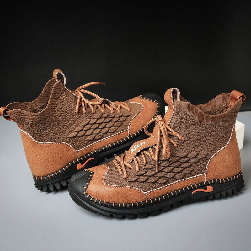 Miesten Nahka Käsinompeleet Hengittävä Kangas Jatkossa Pehmeä Pohja Suljettu Toe Rennot Roomalaiset Saappaat