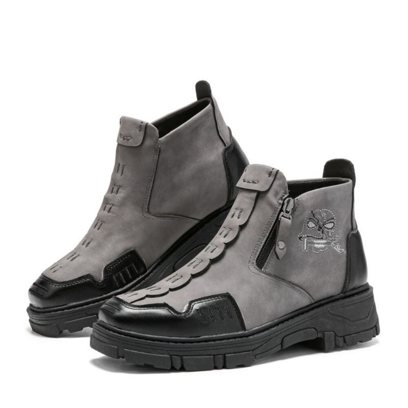 Miesten Nahkaa Hengittävä Pehmeä Pohja Halloween Kallokuvioinen Vetoketju Rento Martin Nilkkurit